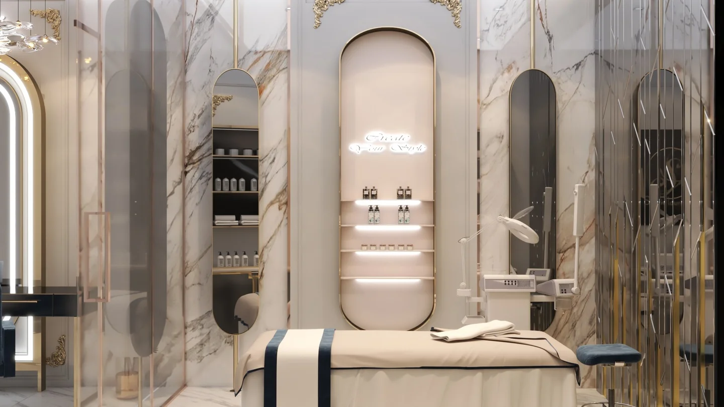 Women usually gather in a place where they can relax and spend some quality time. This is the concept of Sherie women spa. In order to keep up with harmony and a united soul in the Spa, we used 3d wallpapers with the golden inscription and caramel ceramic floor to match with our decoration. we are presenting beautiful, elegant, and luxurious women Spa designs for you.